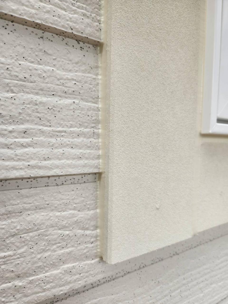 このサイディングぱっと見はツルツルに見えるんですが実は細かい凹凸がいっぱいあるんです!